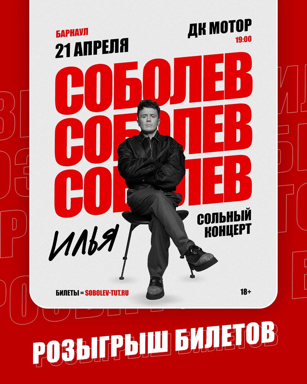 🎫 Барнаул, дарим два билета на сольный концерт Ильи Соболева