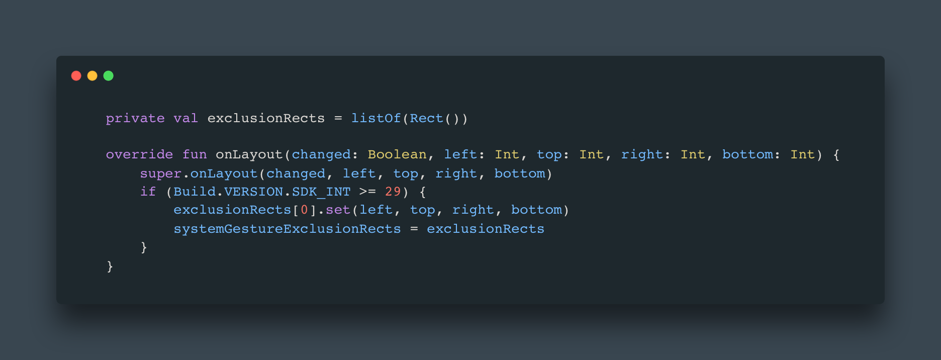 onLayout in your view and set exclusion there whenever the position or size are changed#sdk #gestures #customview