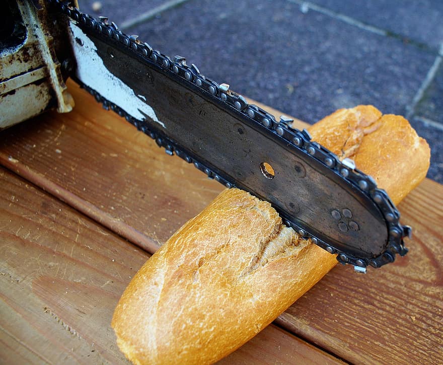 Keling, misolni boshqa obyektga nisbatan olamiz. Non. Nonni kesish kerak nonushtaga. Xuddi o’sha pichoq, arra va benzinda ishlovchi arra bizning yordamchilarimiz bo’ladi. O’ylaymanki, benzinda ishlovchi arrani hech bir odam tanlamasa kerak. Axir stol butun qolishi kerak-ku!