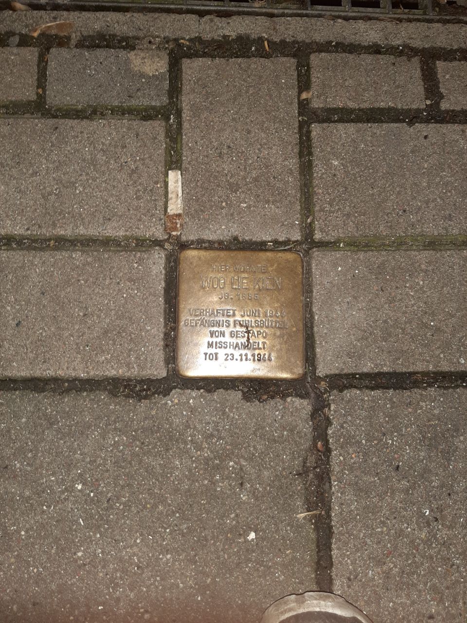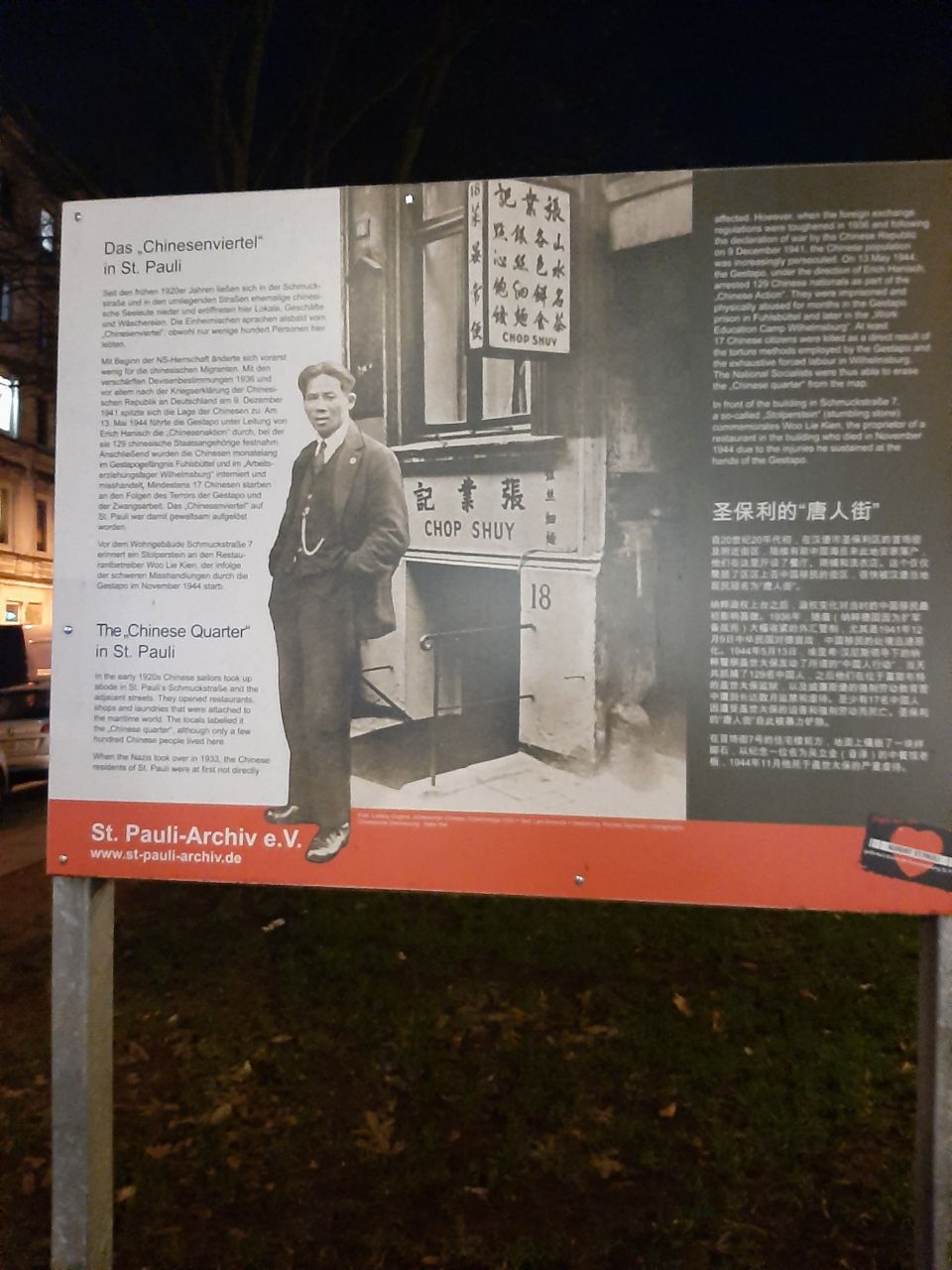А напротив дома номер 7 по Schmuckstraße находится единственный в Гамбурге камень преткновения, посвящённый китайцу.