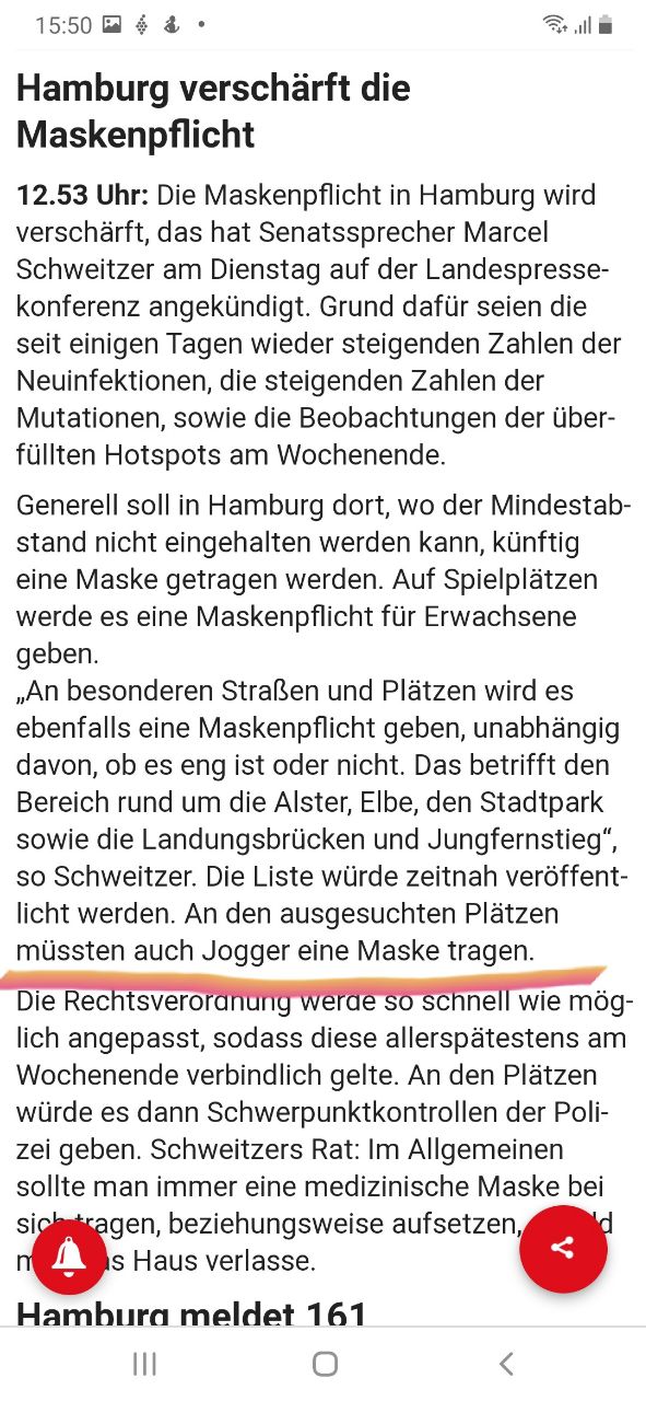 Внезапные +18 в конце февраля в Гамбурге - это не только крутота и неожиданный summer jam, но и ужесточение масочного режима. Чиновники заметили, что народ повыползал из своих нор, и придумали ввести обязательное ношение масок на Jungfernstieg, вокруг Альстера, на набережной Эльбы и в городском парке. Ахтунг: в том числе для тех, кто занимается спортом! Источник здесь.