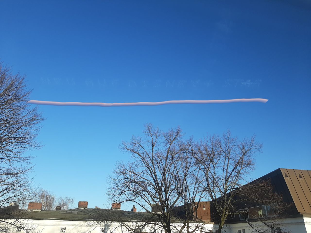 Взглянула в окно и чуть со стула не упала: с небес на меня смотрел текст. С моим зрением и образом жизни я была почти уверена, что там написано "покайся, ибо грядёт". Но нет! Оказалось, один стриминговый сервис такую рекламу себе придумал, в прессе об этом писали.