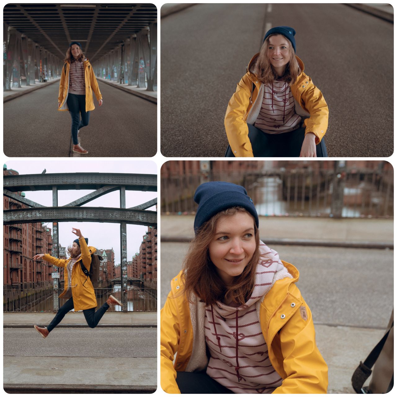 Жёлтая куртка Derbe – знаковый предмет гамбургского/северонемецкого гардероба. Придуманная изначально для моряков (водонепроницаемая + яркая, то есть заметная, если тебя выбросит за борт), она в какой-то момент полюбилась и сухопутным людям. Идеальная верхняя одежда для дождей, с ней никакого зонта не надо (вообще, местные любят подчёркивать свою водоустойчивость, поэтому зонты – это не по-нашему). Швы куртки герметично запаяны, а внутренний слой выстлан мягкой тёплой шерстью. Эта куртка уже давно существует во всех возможных цветах, но классическим считается именно жёлтый. Производителей, выпускающих такие куртки, несколько. Моя – от Derbe, местной фирмы, которая как раз поднялась на теме северной романтики, гамбургской суровости и морских элементах в одежде.