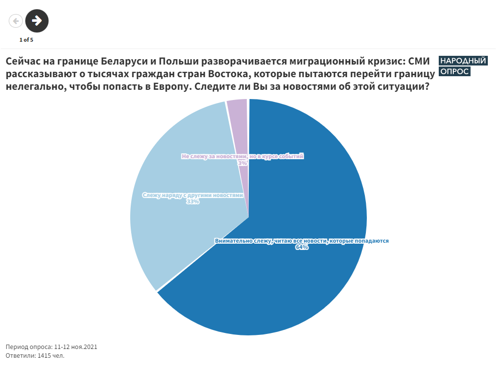 Мы провели опрос среди 1415 человек в период с 11 по 12 ноября, чтобы узнать, как протестная аудитория воспринимает ситуацию с миграционным кризисом на границе Беларуси.