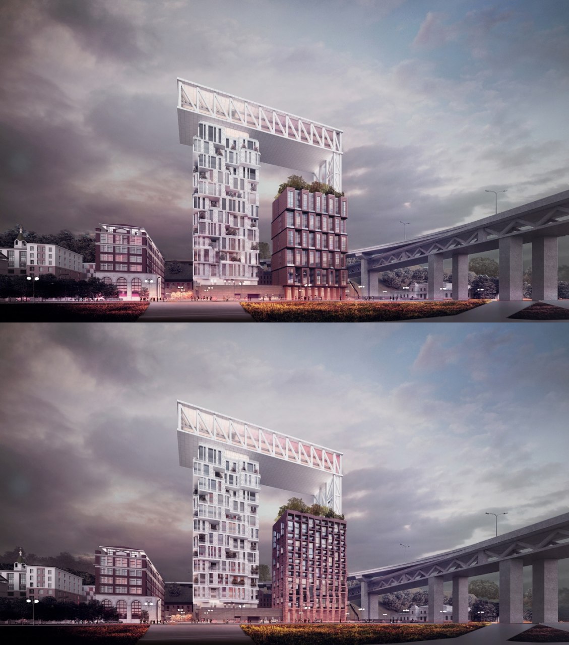 Взамен здесь должен вырасти ̶о̶х̶т̶а̶ ̶ц̶е̶н̶т̶р̶ небоскрёб высотой больше сотни метров. Руководитель проекта Александр Пушкарев говорит, что высотка станет «архитектурной доминантой территории». В доминанте поселится отель и всякие бизнес-центры. Часть доминанты предполагается отдать под недорогое жильё.