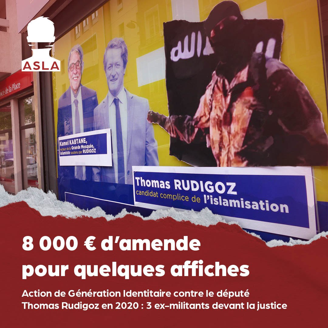 Ce jour-là, les militants identitaires s'étaient rendus à la permanence lyonnaise du député de la majorité Thomas Rudigoz afin de dénoncer, au moyen d'affiches, sa complaisance avec Kamel Kabtane, le recteur de la grande mosquée de Lyon.