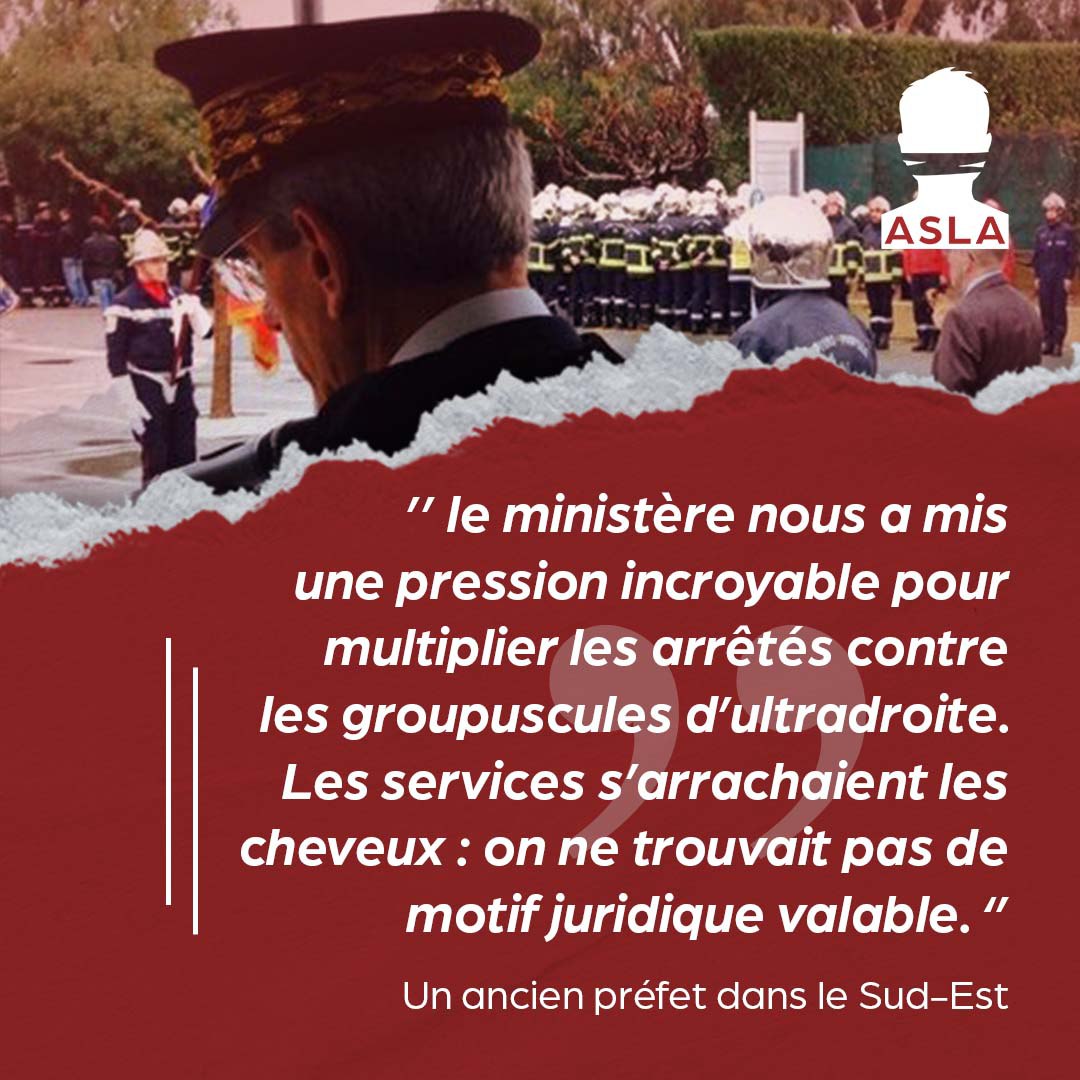 Ces soupçons ont été confirmés dans Le Monde du 18 décembre : « Entre 2021 et 2022, se souvient un ancien préfet dans le Sud-Est, le ministère nous a mis une pression incroyable pour multiplier les arrêtés contre les groupuscules d’ultradroite. Les services s’arrachaient les cheveux : on ne trouvait pas de motif juridique valable. Si ces gens-là nous avaient traînés devant les juridictions administratives, nous aurions pris raclée sur raclée. »