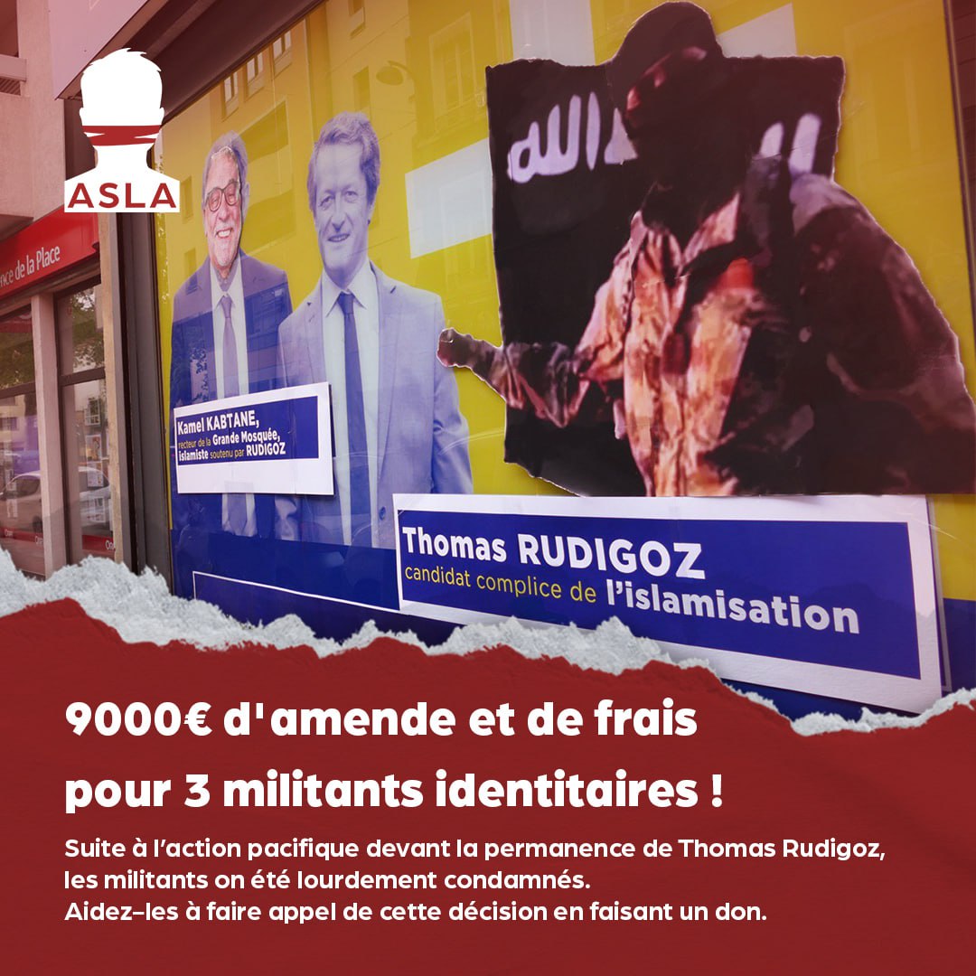 Pour rappel, il leur est reproché d'avoir participé à une action en mai 2020 devant la permanence du député Thomas Rudigoz. Au moyen d'affiches apposées sur la façade, les militants avaient dénoncé la complaisance de l'élu avec l'islamiste Kamel Kabtane.
