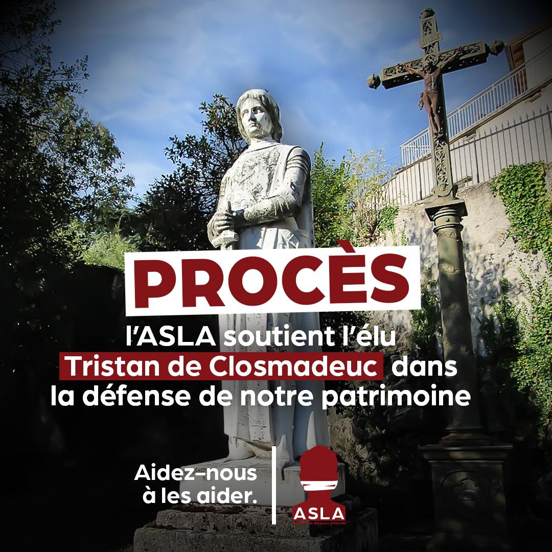 Aujourd'hui, Tristan de Closmadeuc, élu municipal et fervent défenseur du patrimoine français, comparaît devant la Cour d’appel de Lyon. L'ASLA le soutient depuis le début dans son combat judiciaire.