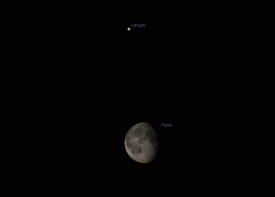 Сегодня ночью произойдет сближение Луны (Ф=0,83) и Сатурна (+0,3 зв. вел.).