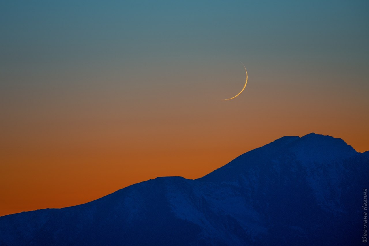 Сегодня вечером сразу после захода Солнца над западным горизонтом можно будет наблюдать очень тонкий серп молодой Луны в возрасте около 44 часов!