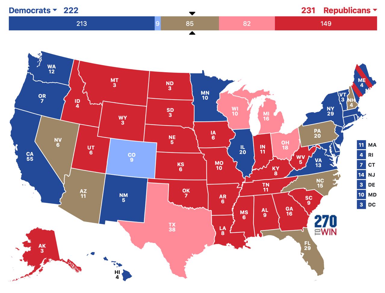 Конечно, если верить открытой социологии, то Байден разгромно побеждает Трампа - с отрывом в 9% или даже 12%. Но статистика по раннему голосованию этого совсем не подтверждает. Вероятно, что в ночь после выборов нас будет ждать очередной удивительный сюрприз.