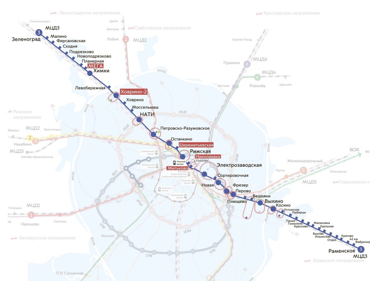Московские центральные диаметры (МЦД) – новый проект наземного легкого метро, которое свяжет область со столицей. Планируется запустить пять диаметров, один из них пройдет через Химки.
