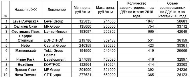 Тройка лидеров по количеству оформленных ДДУ в 2018-м: