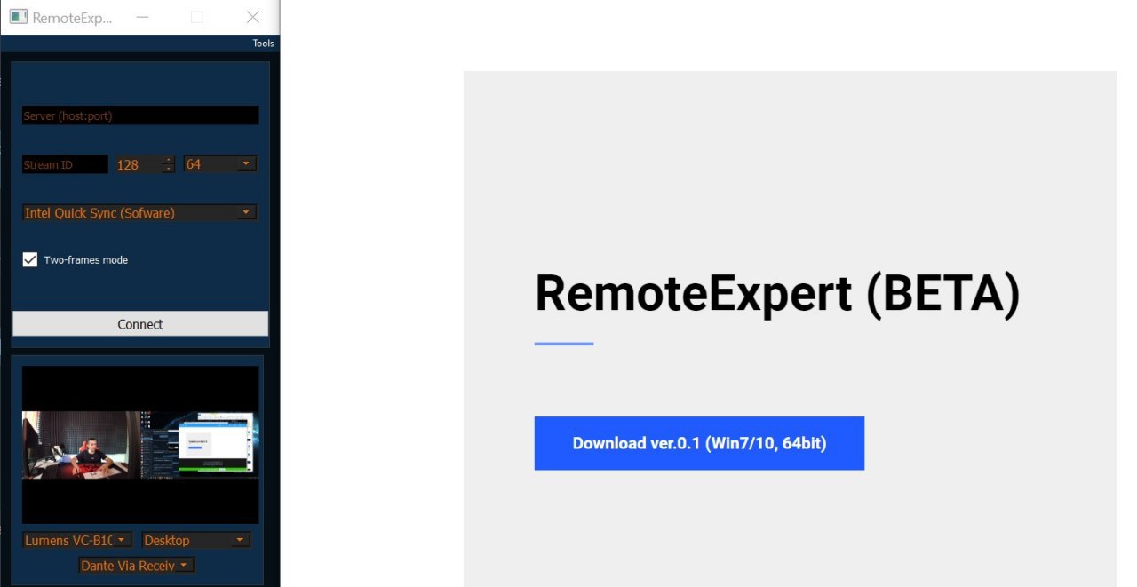 - Участник 2 - RemoteExpert BETA 0.3 - отдаёт по SRT одновременно сигнал с камеры и захват экрана в одном потоке.