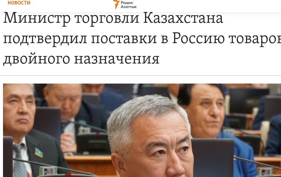 Министр торговли и интеграции Казахстана Жумангарин признал, что из страны в Россию поставлялась продукция двойного назначения, сообщает Радио Азаттык.