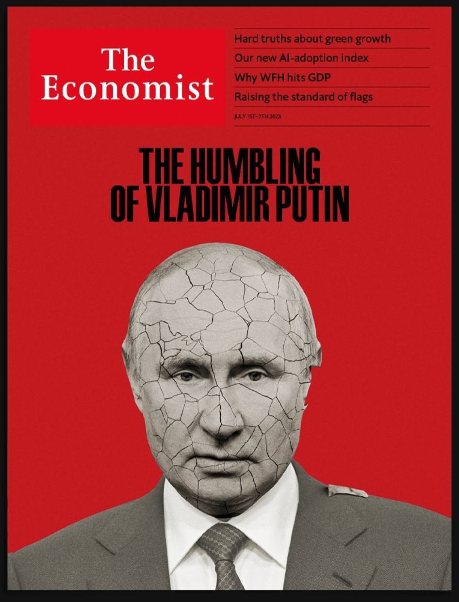 Британский журнал The Economist опубликовал статью о «растущей слабости» Путина, с красноречивой обложкой. Отмечается, что мятеж ЧВК «Вагнер» показал, что Путин не в состоянии выполнять свою главную обязанность - обеспечить безопасность РФ. «Он не столько царь, сколько просто главный головорез в опустошенной банде, в которую он превратил Россию», - пишет издание.