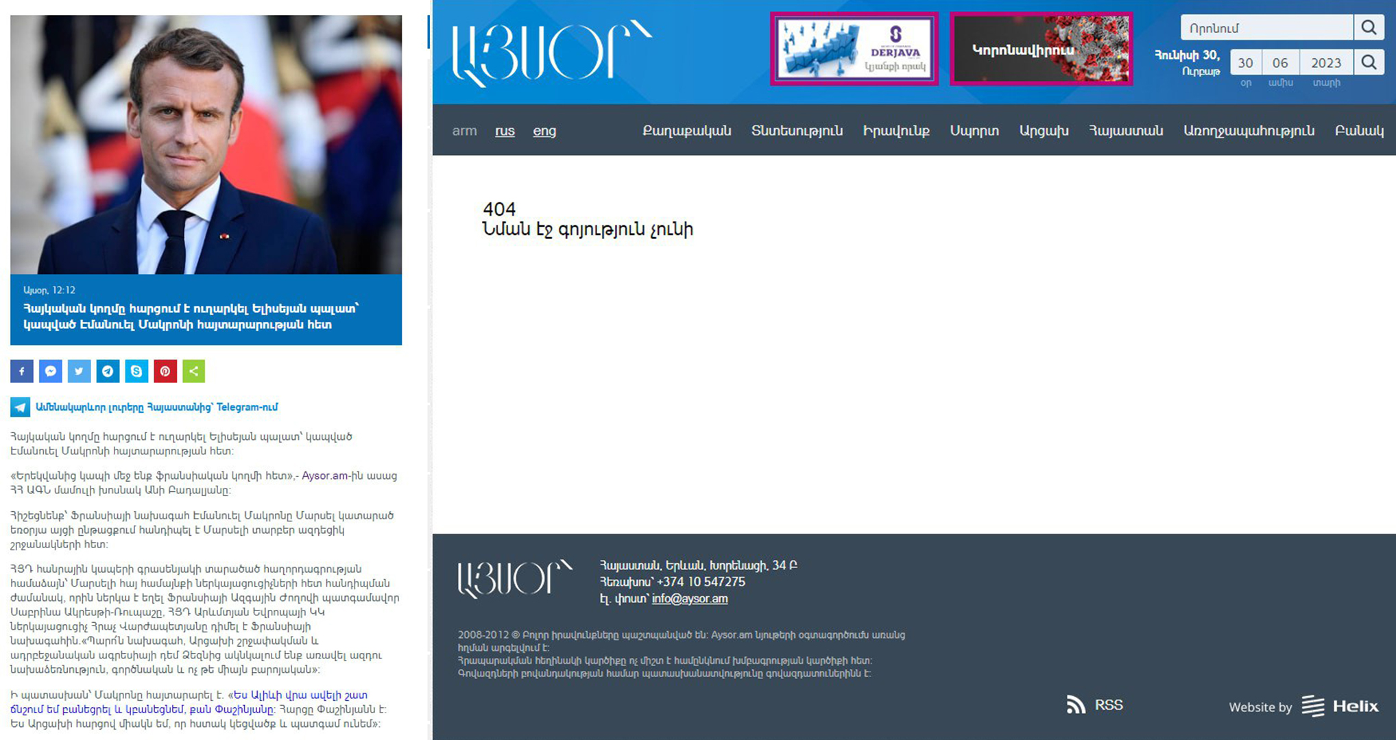 Власти Армении направили запрос в Елисейский дворец по поводу заявлений президента Франции Макрона о том, что он «оказывал и будет оказывать на Алиева большее давление, чем сам Пашинян». Об этом сообщил армянский новостной сайт Aysor.am, со ссылкой на пресс-секретаря МИД Бадаляна.