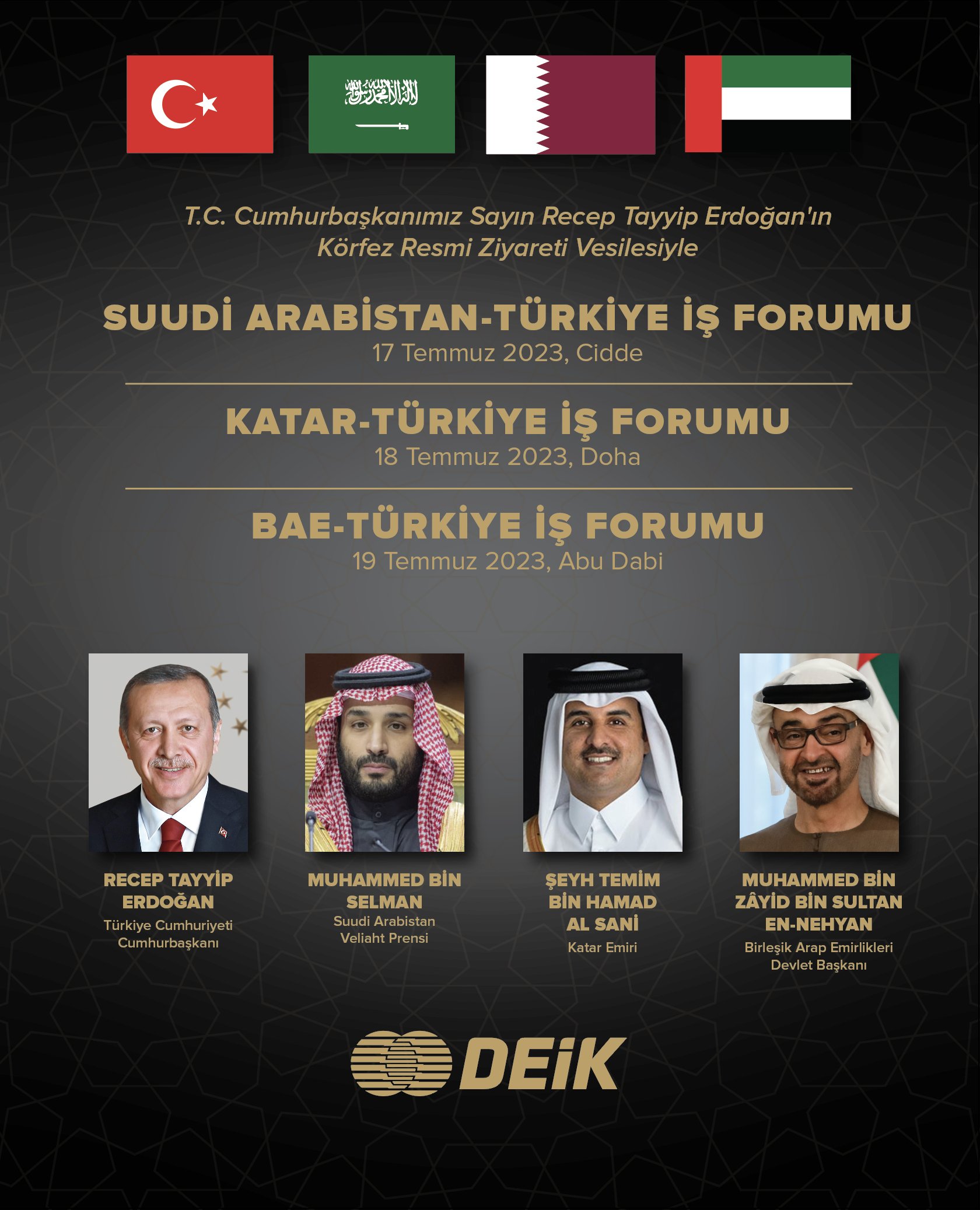 🇹🇷 В ходе турне по странам Персидского залива президент Эрдоган примет участие в бизнес-форуме в Саудовской Аравии, Катаре и ОАЭ. Об этом говорится на странице Совета по внешнеэкономическим связям (DEİK) Турции в Twitter.
