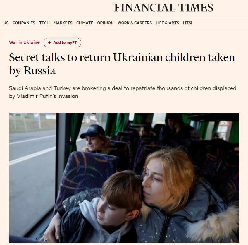 🇹🇷🇸🇦🇺🇦🇷🇺 Financial Times: секретные переговоры о возвращении украинских детей