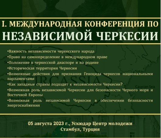 5 августа в Стамбуле состоится международная конференция, посвященная независимости черкесского народа. На конференции среди прочих вопросов будет обсуждаться возможность признания парламентами западных стран Геноцида черкесов (Совет Объединенной Черкесии).