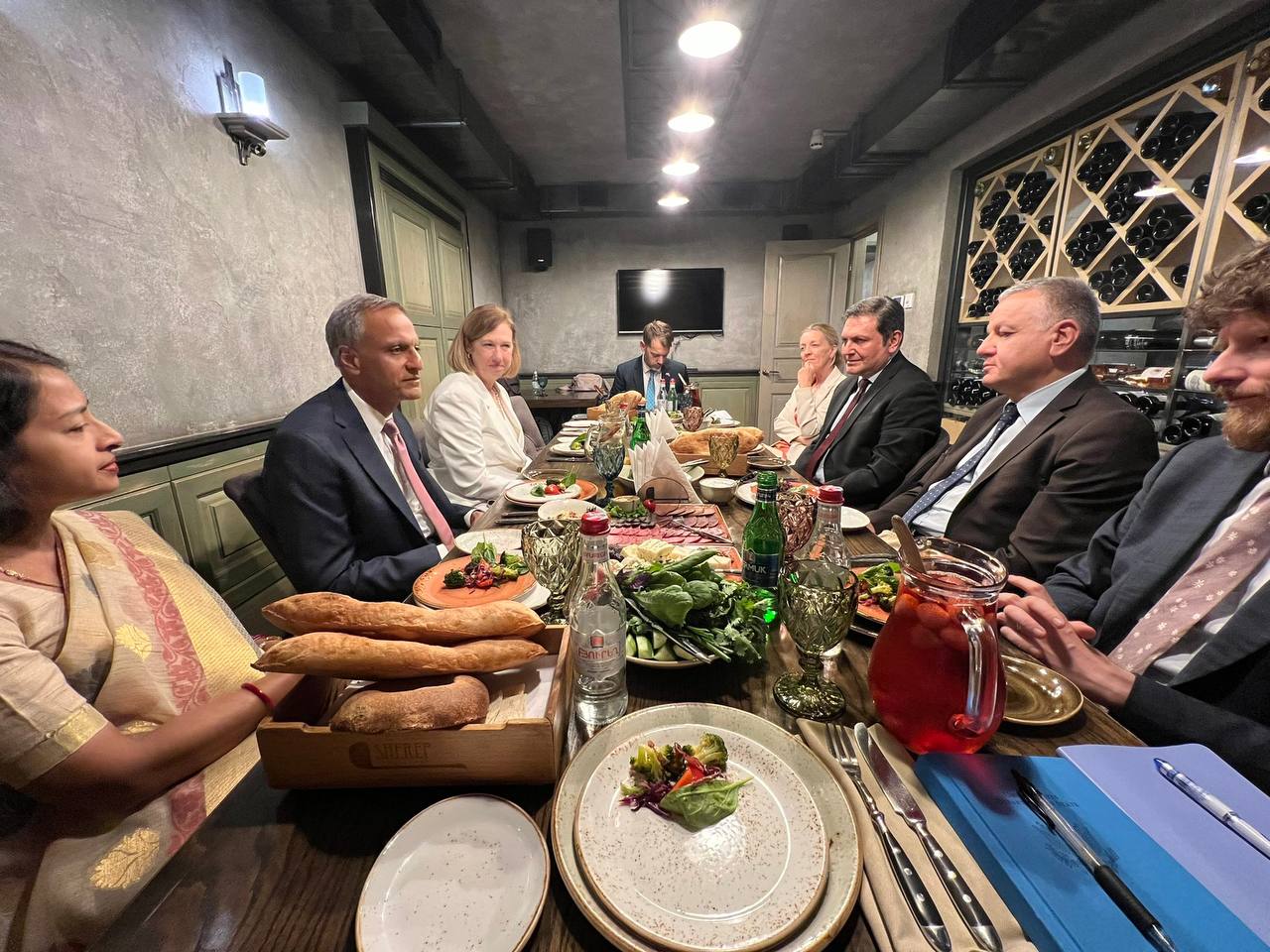 Замгоссекретаря США по вопросам управления и ресурсов Верма встретился в Ереване с послами США, ЕС, Индии и Франции. По его словам, обсуждалась «возрастающая роль Армении на международной арене». Встреча прошла в неформальной обстановке в одном из ресторанов Еревана (Х-аккаунт Верма).
