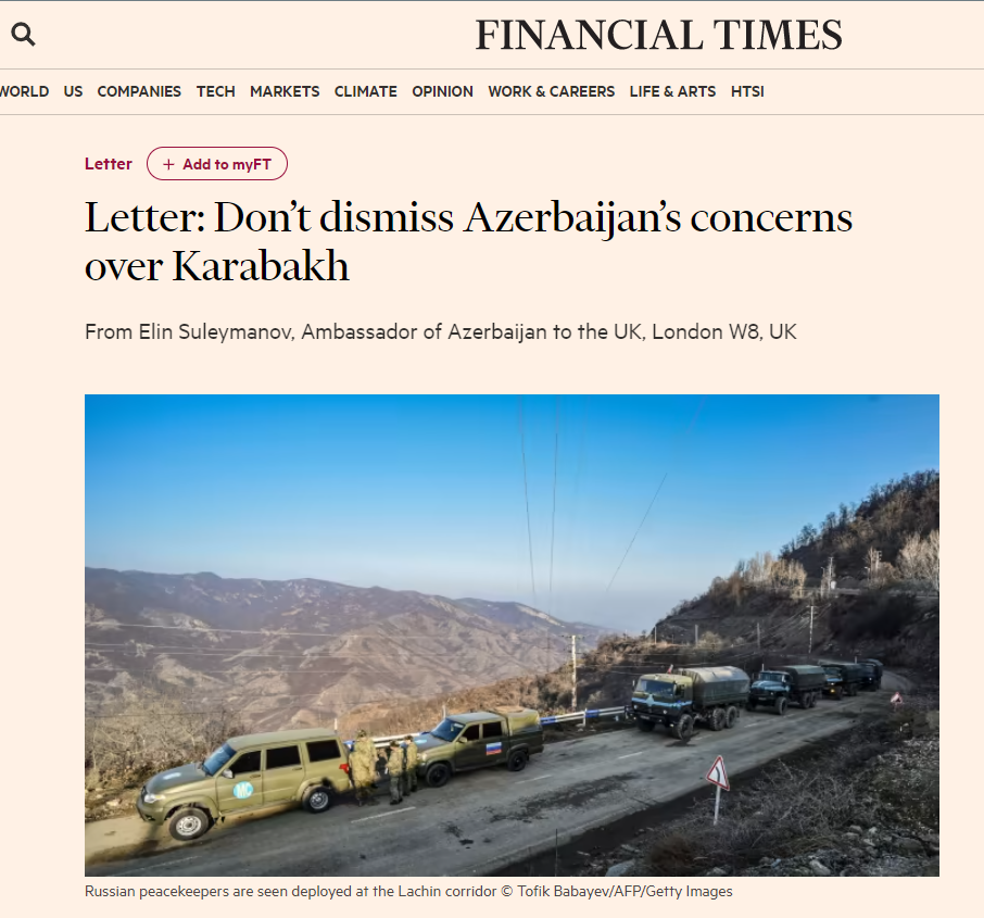 🇦🇿🇬🇧 Посол Азербайджана в Британии Элин Сулейманов отреагировал на статью издания Financial Times