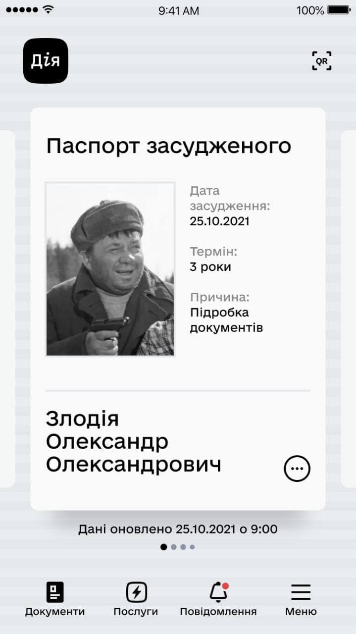 В інтернеті почали продавати фейкову Дію, де можна «згенерувати» будь-які електронні документи. Мінцифри заявило, що за підробку документів можна потрапити під статтю, а міністр Михайло Федоров запостив картинку: