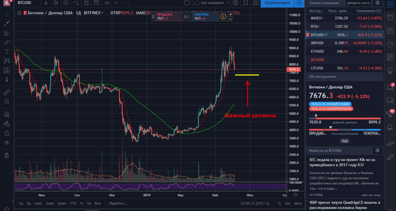Криптоаналитик и репортер BLOCKTV Джо Саз выразил мнение, что рост биткоина продолжится после ликвидации коротких позиций на $100 млн на популярной бирже BitMEX. «Я думаю, рост продолжится и ничто его не остановит. Не хочу заходить слишком далеко, витая в облаках, однако за одну ночь были ликвидированы шорты более чем на $100 млн», - сказал Джо Саз. По его словам, после стремительного роста множество трейдеров надеялось на существенную коррекцию, но их ожидания не оправдались. Также Саз подчеркнул, что не рекомендовал бы сейчас открывать позиции по биткоину, «ни короткие, ни длинные». Между тем глава компании Circle Джереми Аллэйр предположил, что цену биткоина толкает вверх готовящийся к запуску проект Libra от Facebook. «BTC преодолеет отметку в $10 000 к 21 июня, ознаменовав начало криптолета», - добавил Аллэйр. Напомню, ранее я уже снимал ролик с подобным мнением, выводы делайте сами - https://www.youtube.com/watch?v=Rrt1mhz0raQ
