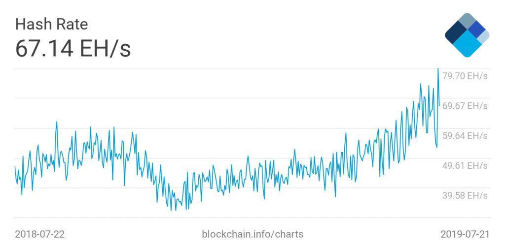 Почти 80 EH/s – хешрейт биткоина вышел на новый рекордный уровень!