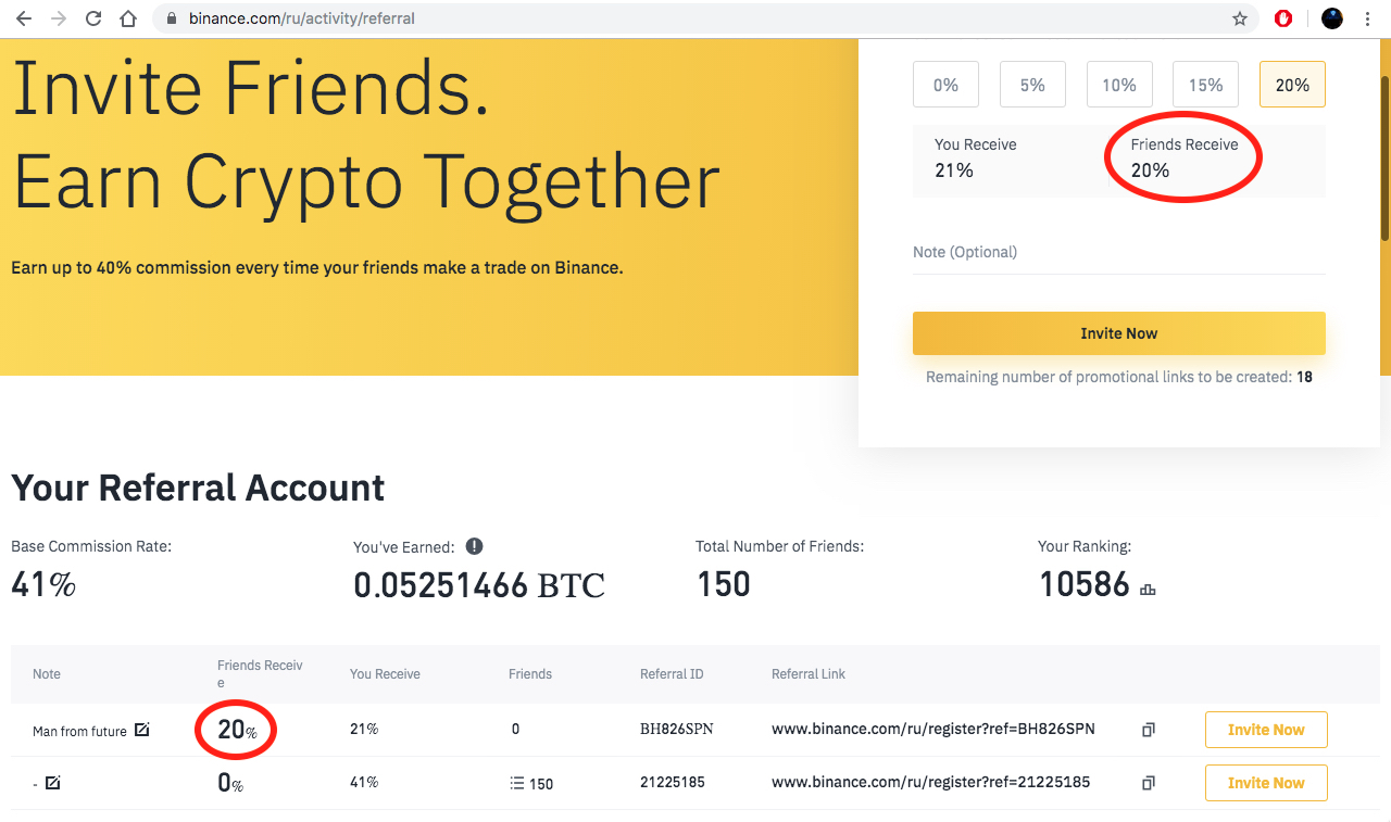 💸 Недавно, биржа Binance позволила делиться процентом своего реферального вознаграждения с привлеченными рефералами для того, чтобы стимулировать пользователей регистрироваться по партнерским ссылкам.