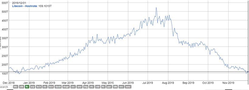 Хешрейт Litecoin упал до годовых минимумов.