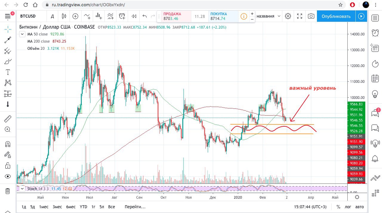 Обновив локальный минимум ниже $7700, биткоин все-таки отскочил выше $7900. Но подняться выше $8000 у первой криптовалюты пока не получилось. Сейчас есть все шансы повторного протестировать $7800. Почему, несмотря на прекрасные фундаментальные данные и позитивный новостной фон, биткоин начал искать дно? Ветер снова дует с традиционных рынков. Во-первых, предложение Саудовской Аравии о скидках для крупных покупателей нефти рынки восприняли как начало ценовой войны против России в связи с провалом сделки ОПЕК+ в пятницу. Учитывая, что спрос на нефть и так снижается из-за коронавируса, это может привести к падению вплоть до $20 за баррель. У сланцевых компаний США большие долги перед банками. С плечом, само собой. Снижение цен на нефть уменьшает стоимость залогов и приводит к дефолту. Массовые дефолты крупных заемщиков - это дефолты банков и крах или необходимость чрезвычайных мер, а это воспринимается инвесторами как очередной тревожный сигнал. И снова пирамида PlusToken. На этих выходных опять, как и в середине февраля, на миксеры перевели 13 000 BTC от PlusToken. Подробнее читайте тут. На тонком рынке в выходные дни совпало несколько факторов - паника на традиционных рынках из-за истории с нефтью и крупные продажи активов PlusToken. Форс-мажор, противостоять которому шансов не было. Чего ждать дальше? В среднесрочной перспективе у биткоина все будет хорошо. Регуляторы и суды один за другим признают биткоин финансовым активом (Германия, Франция, Индия, Южная Корея), хешрейт сети обновляет максимумы, приближается халвинг. В краткосрочной перспективе, если на американской сессии сегодня не уйдем выше $8000, то есть вероятность падения к $7500. В случае позитивного сценария биткоин может быстро вернуться выше $8500. Тогда можно будет говорить о возобновлении роста. На сегодня наиболее позитивным сценарием вижу закрепление в диапазоне $8000-$8200. Негативный - обновление локальных минимумов ниже $7700. Развязка наступит в ходе американской сессии.