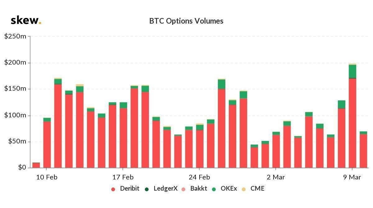 На ведущих деривативных биржах Deribit, LedgerX, OKEx и CME были зафиксированы сделки на $198 млн, что превышает предыдущий рекорд в $171,3 млн от 11 февраля. Из этого числа около 86% или $170 млн пришлись на Deribit. Чикагская товарная биржа (CME) провела сделки с биткоин-опционами на $2,1 млн, тогда как на Bakkt не было продано ни одного контракта. В отличие от фьючерса, где обе стороны обязаны исполнить условия договора, опцион наделяет своего покупателя правом, но не обязанностью купить или продать актив по заранее оговоренной цене в определённый момент в будущем. При этом продавец опциона от исполнения условий договора отказаться не может. Дополнительные риски он компенсирует премией, которую передаёт ему покупатель при заключении контракта. «Обвал предоставил достаточно возможностей как краткосрочным трейдерам, так и долгосрочным инвесторам приобрести биткоины и другие активы по значительно более низким ценам относительно того, где они находились две недели назад. Опционы – один из эффективных методов воспользоваться этой возможностью», – сказал CEO Titus Investment Advisors Джастин Гиллеспи.