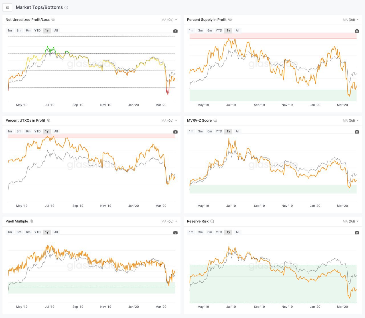 Аналитики сервиса Glassnode в своём еженедельном отчёте утверждают, что метрики на уровне блокчейна поддерживают прогноз дальнейшего роста биткоина. В частности, они указывают на снижение числа крупных транзакций и увеличение числа мелких, что является признаком здоровой торговой активности. В марте наблюдались именно крупные транзакции, говорившие о пересмотре и консолидации позиций трейдерами. Кроме того, увеличилось число активных адресов и пользователей, что также свидетельствует о более широком использовании сети. На стадии капитуляции значительные объёмы активности генерировались за счёт небольшого числа крупных перемещений. Ряд прочих метрик на уровне блокчейна недавно оказался в зонах, исторически совпадающих с минимумами рыночных циклов и являющихся хорошими точками для открытия позиций. Когда курс биткоина упал в марте, все эти метрики тоже обвалились, но недавно начали восстанавливаться, что может говорить об оставлении минимума позади. «Хотя беспрецедентные события в мире увеличивают риск неточности в предсказании цены на основе движений рынка в прошлом, пока эти метрики подают уверенные сигналы», – отмечают аналитики.