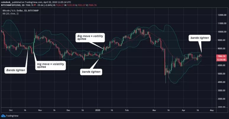 Волатильность биткоина достигла трёхмесячного минимума, предвещая крупное движение рынка. Большую часть двух последних недель биткоин торговался в промежутке $6450–7450, который с четверга сузился до $7000–7300. Спред между линиями Боллинджера, отражающими…