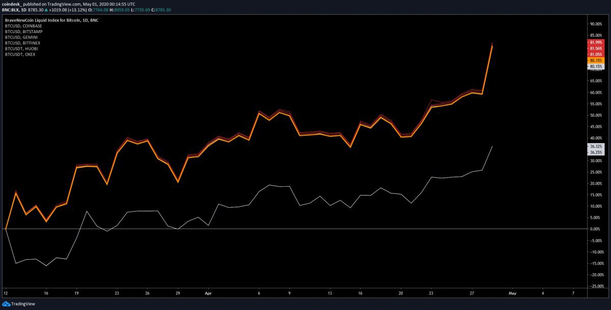 Текущий рост цены биткоина выше $9000 в значительной степени был инициирован американскими инвесторами, свидетельствуют данные исследования CoinDesk. На американских биржах криптовалют биткоин стабильно торговался с переплатой в конце марта в течение всего апреля. Данные рынка биткоин-фьючерсов тоже отражают сильный бычий настрой американских инвесторов. Когда биткоин упал ниже $4000 12 марта, открытый интерес на фьючерсных рынках обвалился больше чем на 50%. Открытый интерес на BitMEX, Huobi и OKEx по-прежнему находится значительно ниже уровней, наблюдавшихся до 12 марта. Ни BitMEX, ни Huobi не обслуживают американских клиентов, а OKEx лишь недавно открыла доступ к своей платформе жителям нескольких штатов. Вместе с тем, открытый интерес на Чикагской товарной бирже уверенно восстановился от мартовских минимумов и продолжает расти. CEO Three Arrows Capital Су Чжу считает повышенную активность резидентов США уникальным бычьим сигналом.
