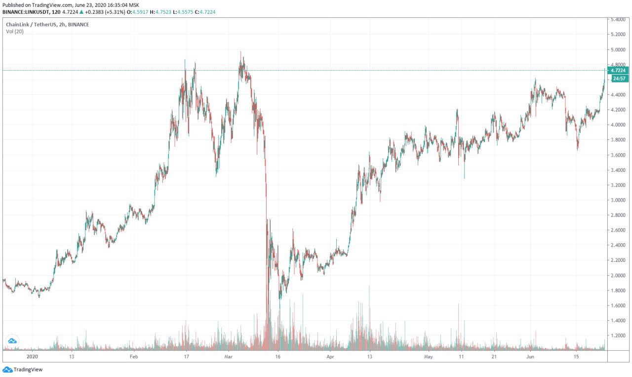 Национальная блокчейн-платформа Китая Blockchain Service Network (BSN) интегрирует сервис оракулов Chainlink в свою экосистему. Для этого BSN вступили в сотрудничество с компанией SmartContract, стоящей за разработкой Chainlink. Согласно Cointelegraph, изначально Chainlink был лишь вторым по приоритетности в списке поставщиков данных на базе оракулов. Ранее стало известно, что создатели BSN планируют реализовать поддержку Ethereum и EOS. Предполагается, что это позволит расширить возможности сервиса «блокчейн как услуга» и операционную функциональность для клиентов. Курс LINK на фоне сегодняшнего объявления продолжил рост и за сутки поднялся на 11%, достигнув максимальных значений со времени мартовского обвала.