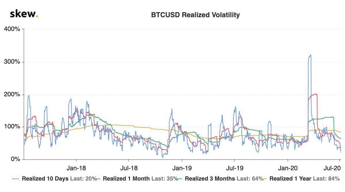 Реализованная волатильность биткоина упала до значений, предшествовавших обвалу к $3 000.