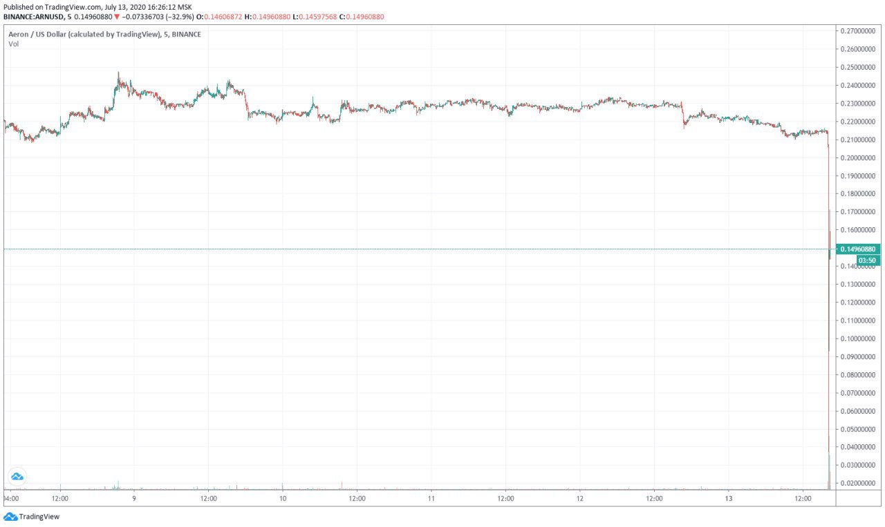 Binance сегодня объявила о грядущем удалении трёх активов со своей платформы. 20 июля делистингу будут подвергнуты Aeron (ARN), Etherparty (FUEL), Lunyr (LUN) и соответствующие им торговые пары ARN/BTC, ARN/ETH, FUEL/BTC, LUN/BTC. Согласно анонсу, эти токены были выделены в ходе текущей оценки представленных на бирже активов как переставшие соответствовать её требованиям. Ожидаемо сообщение о делистинге крупной биржи повлекло снижение курсов соответствующих активов. Больше других пострадал ARN, цена которого мгновенно опустилась на 80%, прежде чем частично восстановиться. Падение FUEL и LUN составило 20% и 10% соответственно. Все три проекта проводили ICO в 2017 году. Aeron тогда удалось собрать $5 млн, Etherparty – $34 млн, а Lunyr – $3,4 млн. Со времени краудфандинговых кампаний их токены многократно подешевели. FUEL, например, на ICO стоил $0,10, а сейчас – только $0,003.