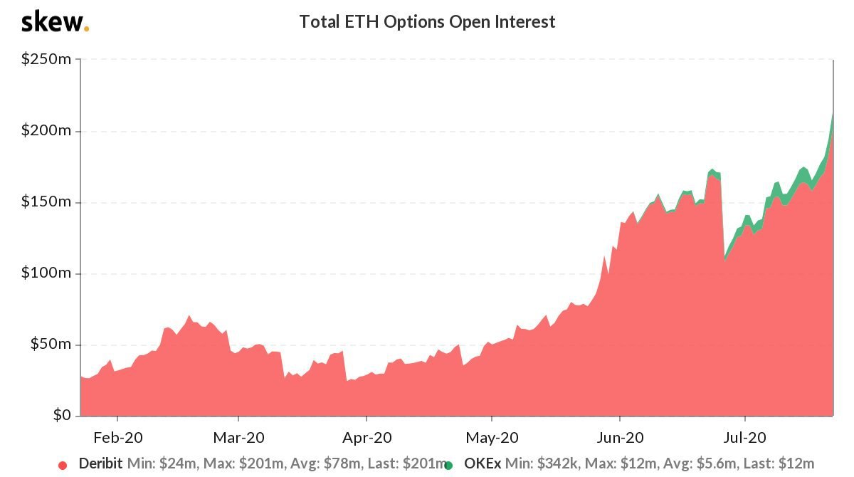 Открытый интерес по Ethereum-опционам достиг нового максимума на фоне подъёма цены к $270.