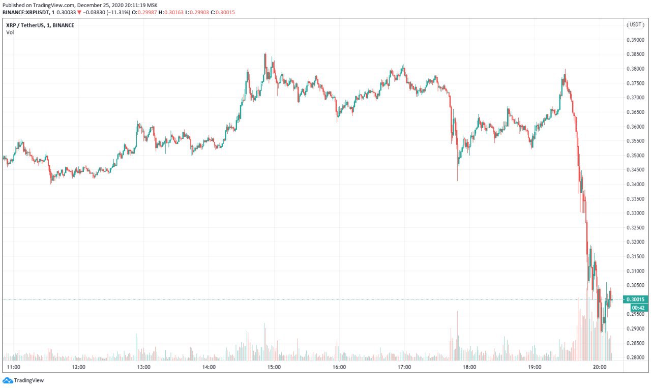 Первая крупная ориентированная на розничных клиентов биржа криптовалют вводит ограничения на торговлю XRP. Это связано с иском, поданным на этой неделе Комиссией по ценным бумагам и биржам США (SEC) к эмитирующей его компании Ripple. Bitstamp сегодня объявила, что ее американские клиенты больше не смогут осуществлять операции с активом на платформе. Компания отмечает, что новые ограничения не затронут пользователей из других стран. Согласно SimilarWeb, более 11% трафика Bitstamp приходит из США, поэтому решение биржи может оказать ощутимое влияние на ликвидность рынков XRP. По данным CoinGecko, Bitstamp на сегодняшний день является 11-й крупнейшей биржей криптовалют с суточным оборотом в $501 млн. Пара XRP/USD оказалась второй наиболее востребованной на ней за последний день с объемом торгов в $110 млн. Непосредственно перед публикацией уведомления Bitstamp XRP торговался на локальном максимуме около $0,38, однако сразу же после начал резкое снижение и за полчаса обвалился на 25%.