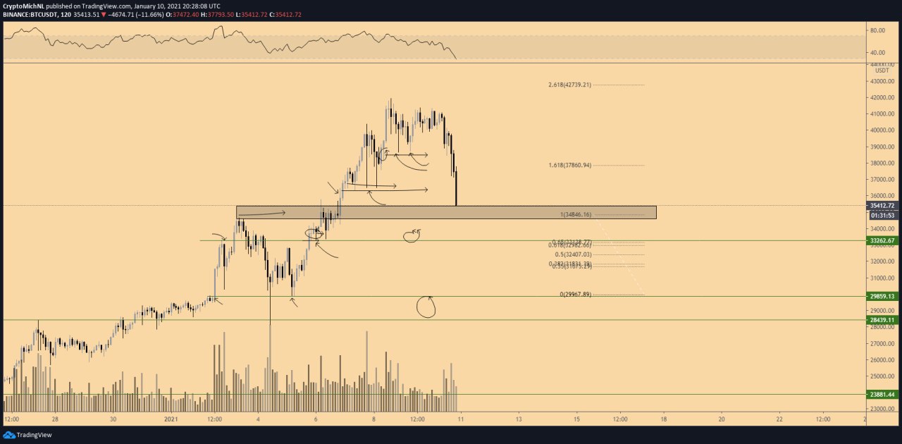 Курс биткоина испытал резкое снижение вечером в воскресенье, в процессе достигнув отметки $32 000. Несмотря на то, что торговля на криптовалютном рынке, в отличие от фондового, ведется круглосуточно, сессии здесь тоже разделяют на европейскую и азиатскую в зависимости от времени суток в конкретной части мира. Ночные снижения биткоина часто связывают с последней. «Ситуация развивается быстрее, чем я ожидал. Должно быть, азиаты проснулись раньше обычного», – добавляет трейдер Эдвард Морра. «Биткоин приближается к первой точке привязки, так как данная зона выступала сопротивлением во время более раннего подъема, – пишет аналитик Майкл ван де Попп. – Другая точка привязки: $33 000 – 33 500. Затем $29 000 – 29 500. Дальше $25 000 - 23 500.» Любопытно, что ведущие трейдеры биржи Binance не ожидали сегодняшнего движения и держали преимущественно длинные позиции в соотношении 59%. На этом фоне объем ликвидаций позиций по рынку в целом за последние четыре часа составил около $1 млрд.