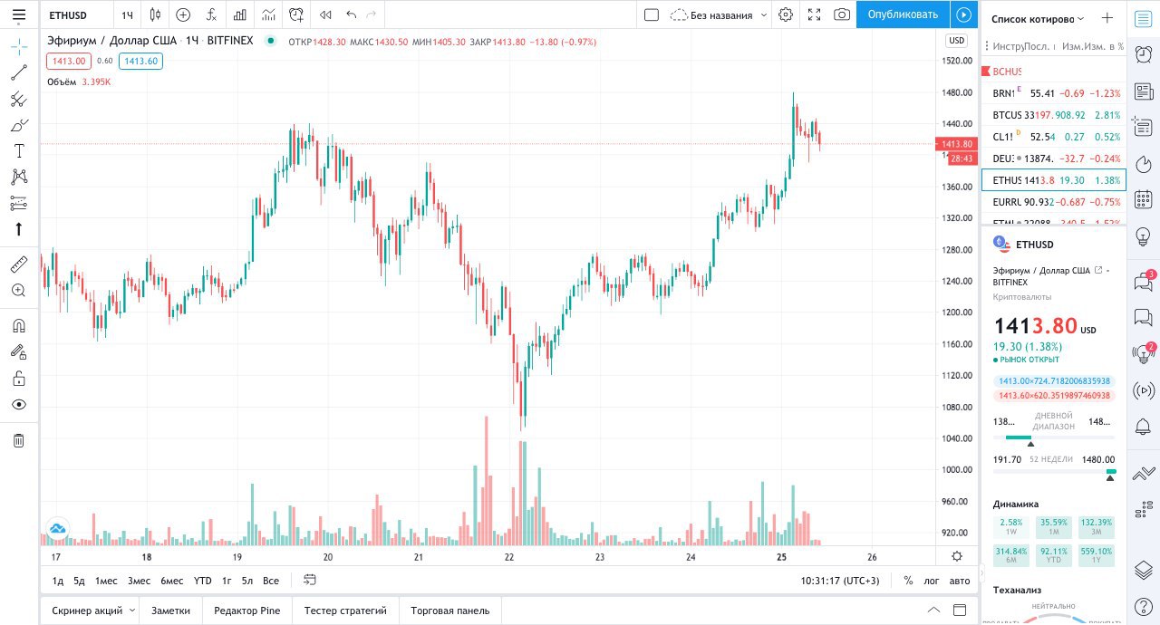 Цена Ethereum достигла нового исторического максимума этой ночью. На крупных биржах значение поднималось выше $1 480, превзойдя предыдущий рекорд, установленный около отметки $1 440 на прошлой неделе. Биткоин, тем временем, продолжает консолидироваться около $33 000, после того как сам обновил максимумы 8 января. Эфир превосходит его по уровню роста с начала года с 88% и 11% соответственно. Относительно мартовских минимумов ETH поднялся на 1 200%, а BTC – на 700%. При этом между двумя криптовалютами сохраняется пятикратный разрыв в капитализации. Данные Google Trends также указывают на то, что сейчас эфир привлекает наибольшее внимание пользователей поисковой системы за все время существования криптовалюты, затмевая пики 2017 года.