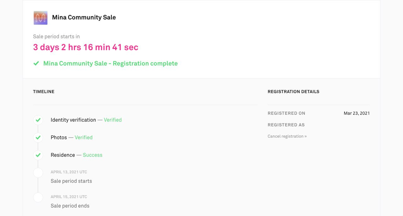 🔸 Покупку токенов MINA можно будет осуществить за USDT, USDC, BTC и ETH c 13.04.2021 (17:00 мск) до 15.04.2021 (02:59 мск). Важно: как правило, из-за высокого спроса на подобные сейлы, приобрести токены удается не всем, так как место в очереди на покупку можно получить только рандомно.