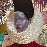 Работа выстраивает диалог между традицией и современностью, переосмысляя визуальный язык японской гравюры в медиуме живописи. Здесь форма предельно очищена: линия дисциплинирована, цвет редуцирован, пространство лишено повествовательной перегруженности.