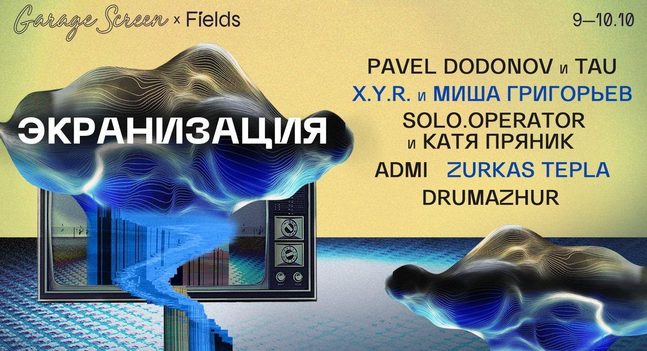 Через неделю — 9 и 10 октября — Fields и музей «Гараж» устраивают совместную серию аудиовизуальных концертов «Экранизация». Местом действия станет летний кинотеатр музея Garage Screen. Устроим запоздалые проводы лета в стиле AV.