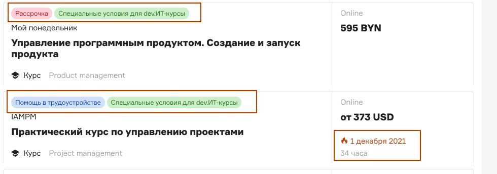 — Добавили акцент на дате курса. Теперь, если до начала курса осталось 2 недели и менее, курс выделен🔥
