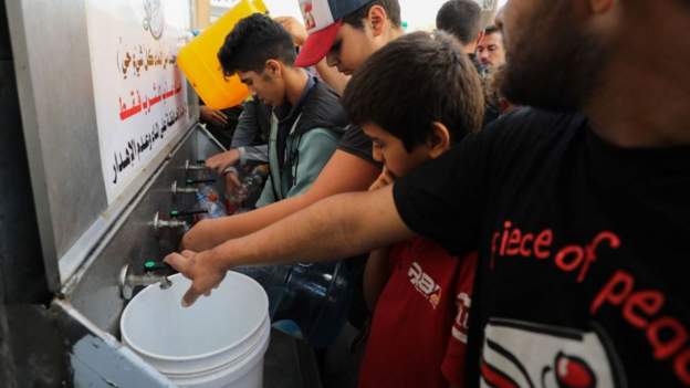 В понедельник одна линия водоснабжения работала в течение трёх часов только на юге сектора Газа, обеспечивая водой лишь половину населения Хан-Юниса, в результате бегства палестинцев из Газы разросшегося до 1,1 млн человек.