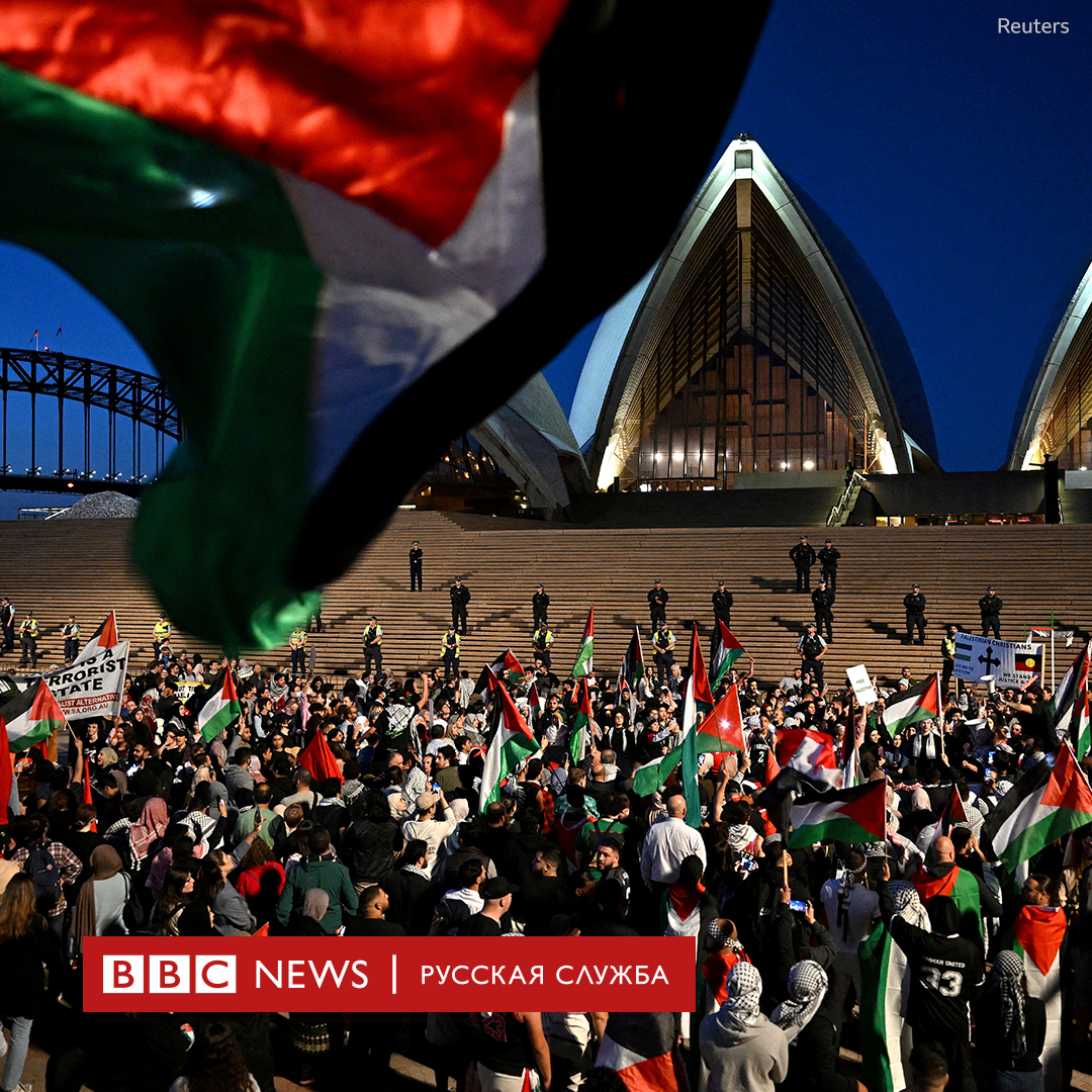 Ранее сине-белые израильские цвета были спроецированы на всемирно известное здание сиднейской оперы, и пропалестинские группы ответили на это акцией протеста.